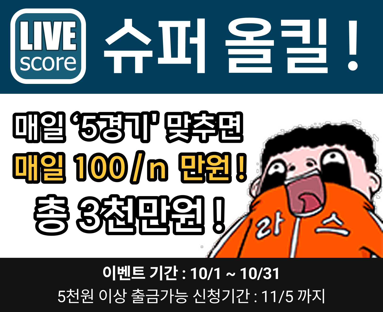 #라이브스코어 #LIVE스코어 #올킬이벤트 #슈퍼올킬이벤트 #올킬 #슈퍼올킬